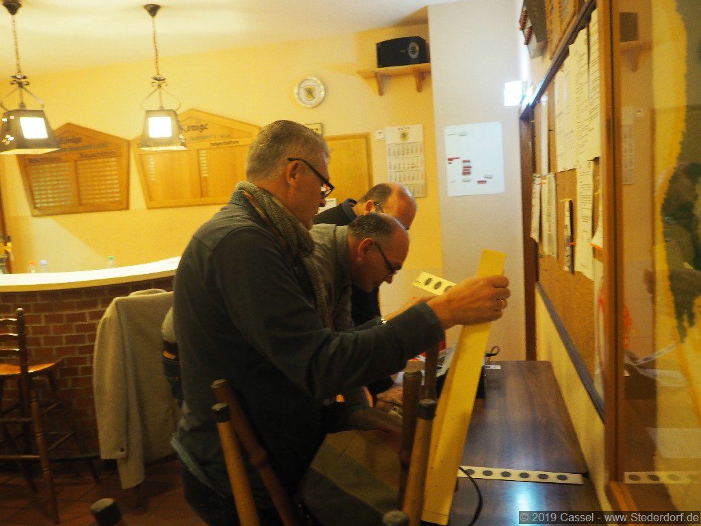 Am Ende stand dann die Auswertung durch die beiden Schießaufsichten Claus und Stefan an und im Bereich der Auswertung kam es schon zu einem Raunen. Vorweg sei gesagt, dass alle Teilnehmer sehr gut geschossen haben, so auch die Aussagen der erfahrenen Schützenbrüder.